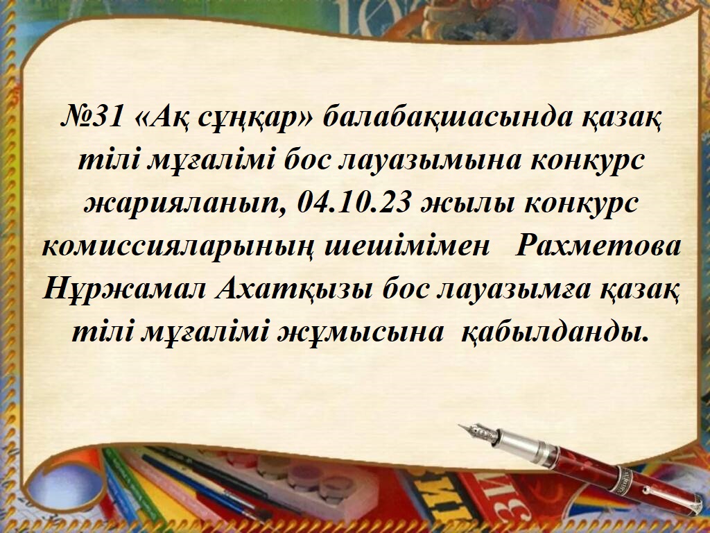“№ 31 Ақ сұңқар ” балабақшасының миссиясы