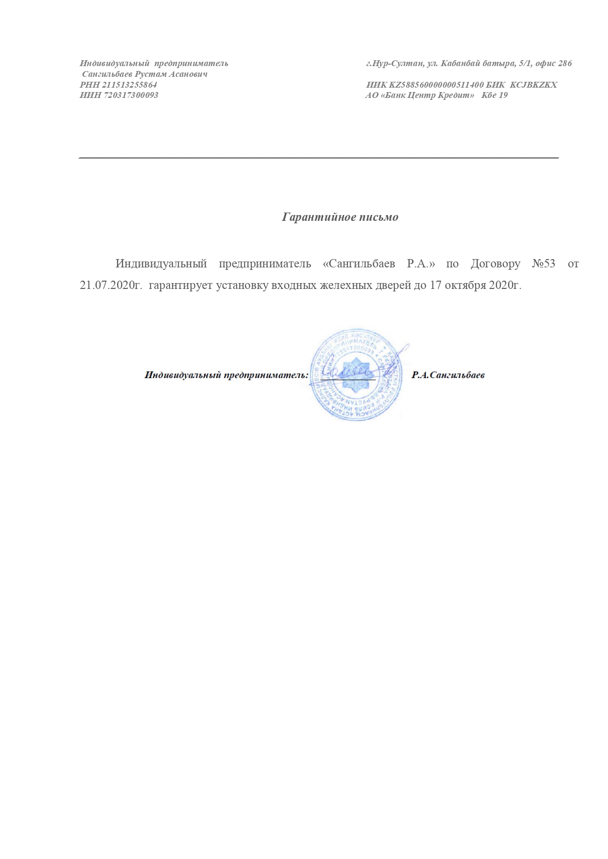 Гарантийное письмо