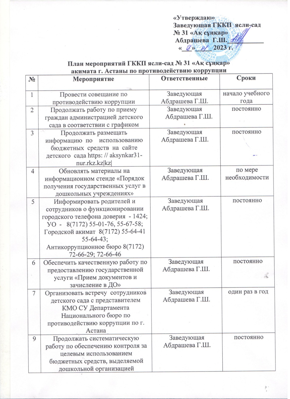 | 4 | План мероприятий по противодействию коррупции 2023 г | |